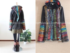 とんがり帽子*ダメージ加工*ツタ刺繍ZIPフードパーカー