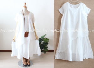リネン混*サイドロングドレープ*裾変形ワンピース*エスニック*dandelion*インド*生成り*F-Zz